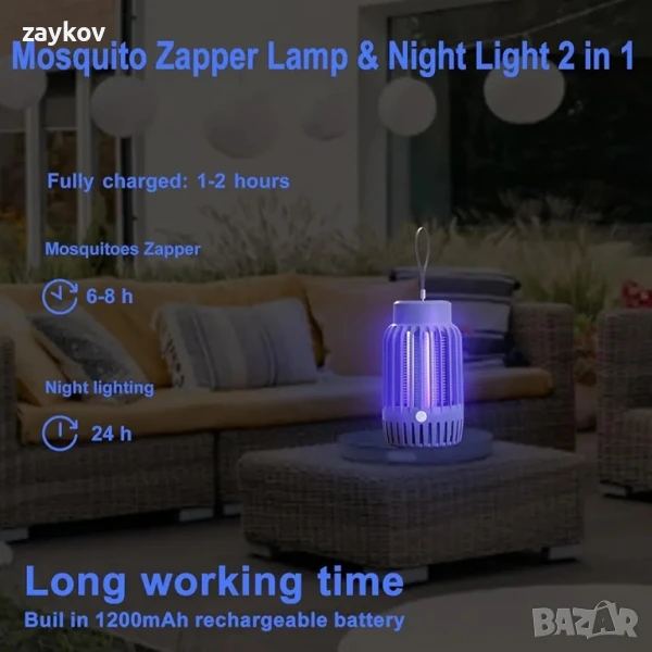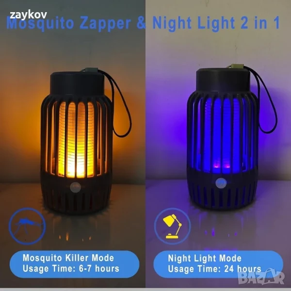 Лампа против комари и нощна светлина 2 в 1: Устройството против насекоми GBARAN има 2 режима. Не само е устройство за борба с комари, но и е топла нощна светлина. Тези два режима могат да се превключват според нуждите. Подходящо за дейности на закрито и на открито.