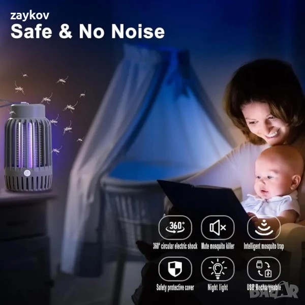 Безопасна и безшумна работа: 100% физически метод за убиване на комари, мухи, молци, насекоми, нетоксичен, без химикали, безопасен за бременни жени, деца; с изолационна мрежа за предотвратяване на случаен контакт, за да се гарантира безопасността на потребителя, особено на децата. Безшумна работа, осигурява ви спокоен сън без ухапвания от комари.