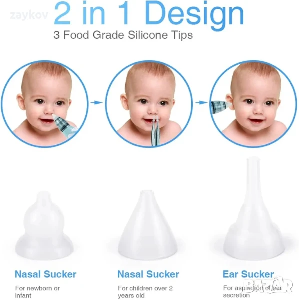 Лесна употреба и почистване: дизайн с еднобутонно управление, просто натиснете бутона, плъзнете го в носа на бебето и изчакайте сополите да се отцедят. Сглобяемите части улесняват почистването след всяка употреба. Просто изплакнете този подвижен аксесоар с гореща вода, за да предотвратите развитието на мухъл и бактерии вътре.