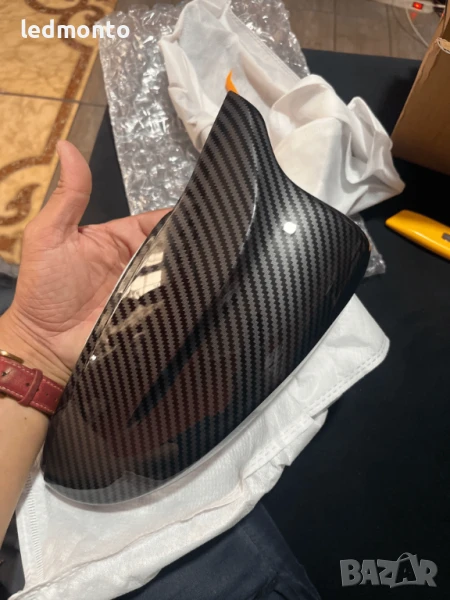 Добавете спортна визия и защита на страничните огледала с комплект карбонови капаци за: