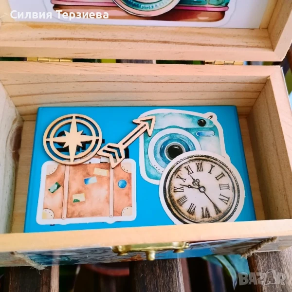 Ръчно изработена дървена кутия "Бисери в куфари" с колекция 21 вдъхновяващи карти → Обява 50609109