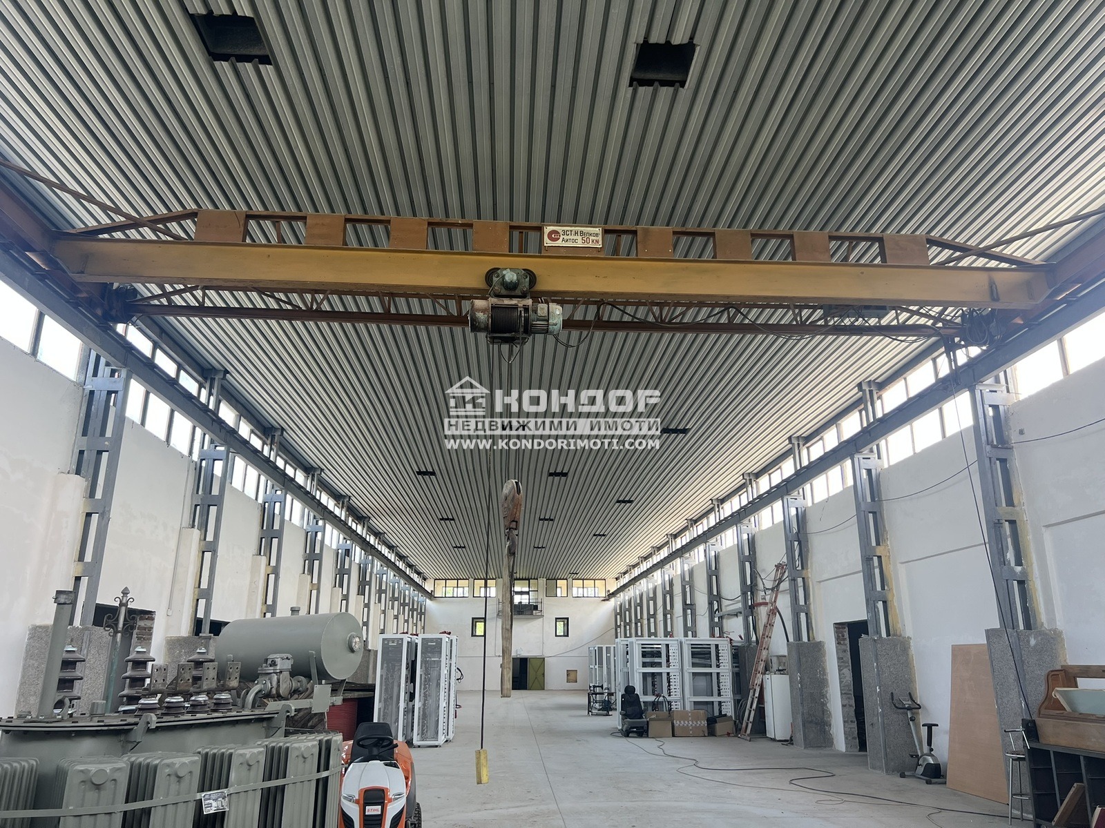 Имота разполага с много зали за съхранение както и една обща просторна част. Тавана е с височина от 7 метра. като в обема на сградата има складови площи с височина 4.50 м.
