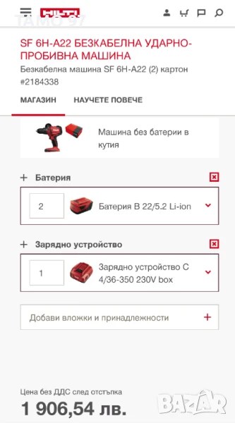 Магазинската цена на комплекта е: 1 906лв БЕЗ ДДС (С ДДС е 2 287лв)