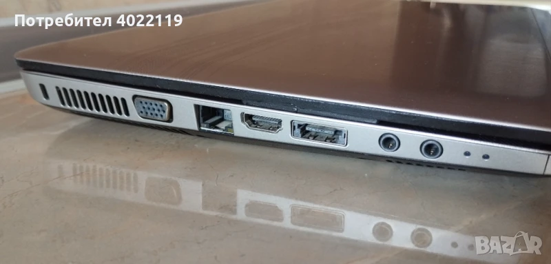 Лаптопа е купуван от Англия, ползван е за сърфиране в интернет. Въпреки, че е с Уиндоус 7, все още работи добре с едновремено отворени 60-70 сайта, дисковото устройство е използвано съвсем малко, записани едва няколко диска и евентуално прегледани няколко диска със снимки. Визуално е в отлично състояние, с изцяло алуминиев корпус, единствено гуменото уплътнение около дисплея леко лепне. Батерията естествено вече не държи заряд и е за рециклиране. Единствено през годините е сменено вентилаторчето за охлаждане, защото изгоря. Никога не съм имал каквито и да е проблеми с работата му. Лаптопа е купуван нов за над 700 паунда. С него ще получите 2 подаръка - луксозна водоустойчива и удароустойчива бизнес чанта SAMSUNG с някалко джоба и отделения, която съм купувал отделно за над 100 паунда и охлаждаща поставка Targus, която все още струва 174 лв. в емаг. Ето и малко данни за лаптопа: