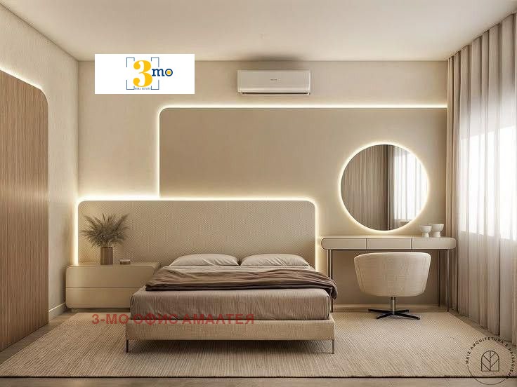 3mo Амалтея продава непреходен тристаен апартамент в жилищна сграда пред Акт 14 в ж.к. Люлин 6. Предложеният имот е с обща площ от 101,74 кв.м. (застроена 86,82 кв.м.) и се състои от: входно антре (6,41 кв.м.), всекидневна с трапезария и кухненски бокс (26,51 кв.м.) с балкон (5,10 кв.м.), спалня (10,84 кв.м.) с дрешник/склад (0,68 кв.м.) и баня с тоалетна (5,03 кв.м.). Имотът има втора спалня (9,10 кв.м.) и още една баня с тоалетна (2,31 кв.м.).