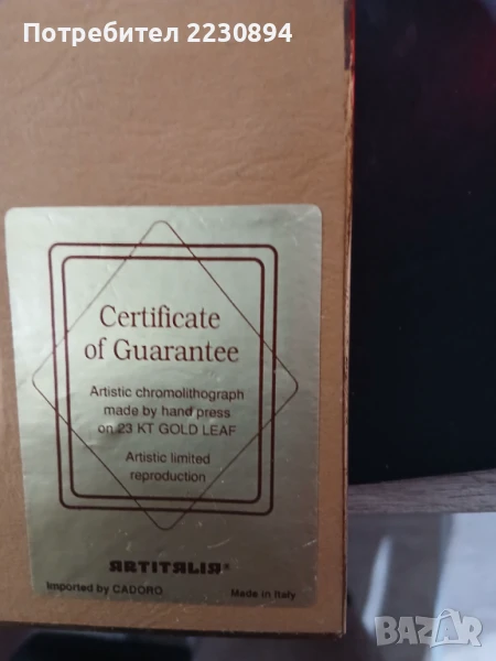 .Репродукция на картина.Произведено в Италия.Изработена от ръчна преса на 23 каратов лист.