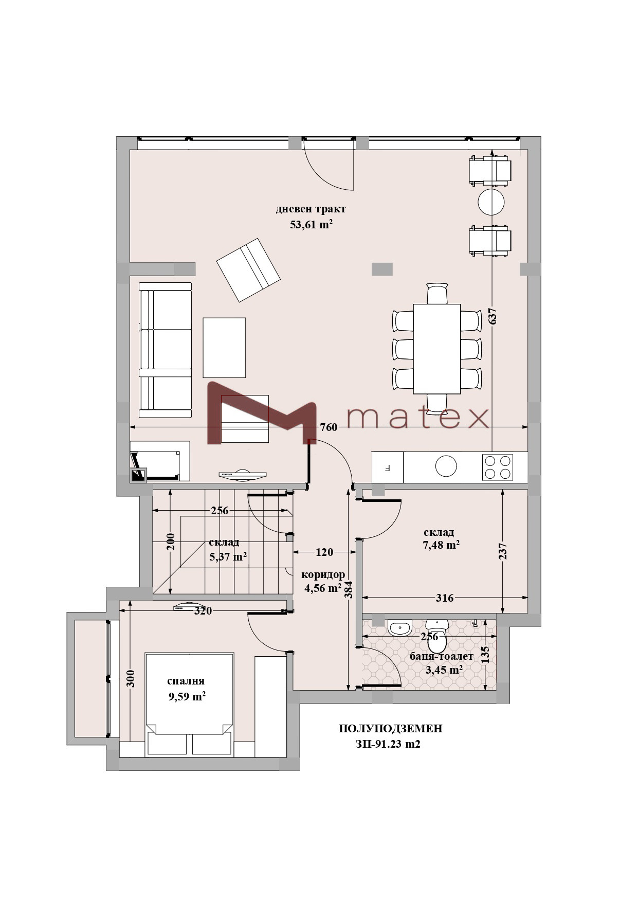 Просторен дневен тракт с кухненски кът, спалня, баня с тоалетна и Складово помещение