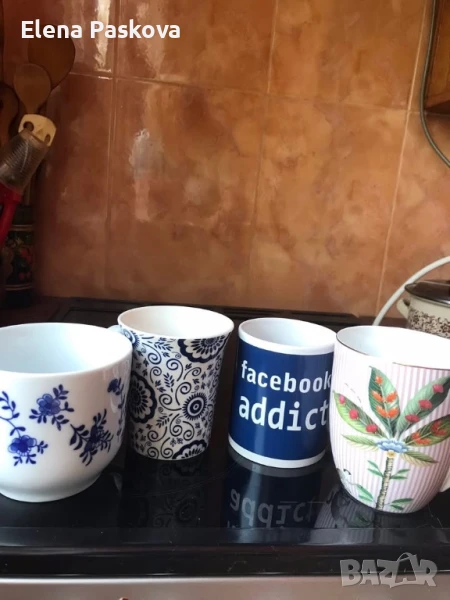 4 броя нови порцеланови чаши за горещи напитки с голяма вместимост, обща цена - 15 лв. Еконт, Спиди, за София - лично предаване. При интерес - лично съобщение.