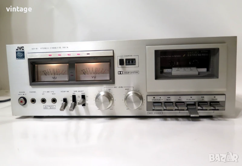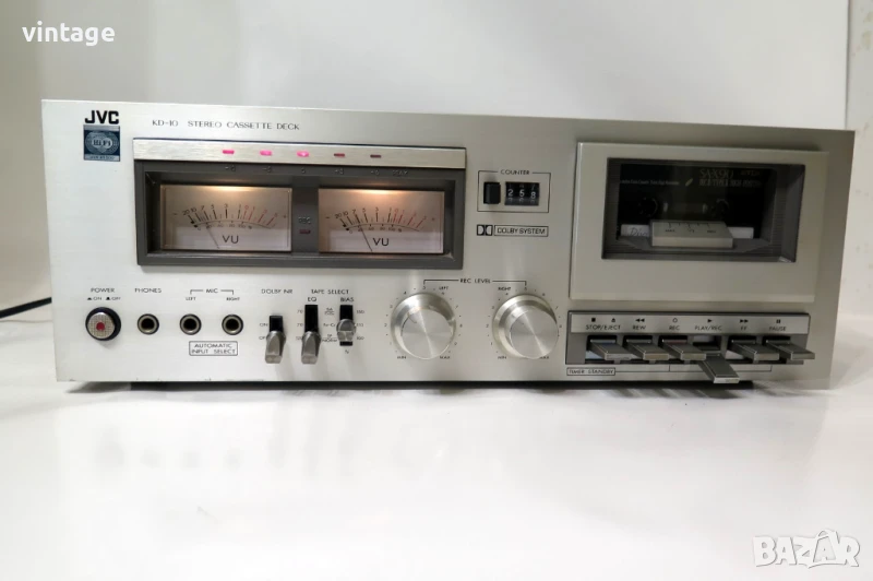 Стерео касетен дек, отличен технически (нови ремъци), много добър външен вид. Automatic input select, Dolby NR, стрелкови индикатори за изходните нива. KD-10 включва следните функции: 5-LED индикатор за пикови стойности, функция за таймер в режим на готовност, автоматичен селектор на входен сигнал, електронен регулатор на JVC и други.