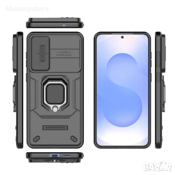 Samsung Galaxy S25 Edge Magnetic Case Lens /Kickstand PC + TPU Удароустойчив Ring Holder Калъф и Про