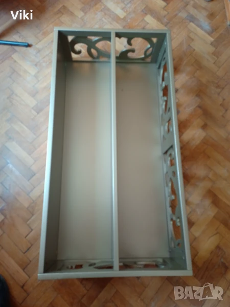 Много запазена етажерка старинно злато за стена . Етажерката е поръчкова но вече не пасва на интериора. Етажерката е с размери 116см х 60см х 27см