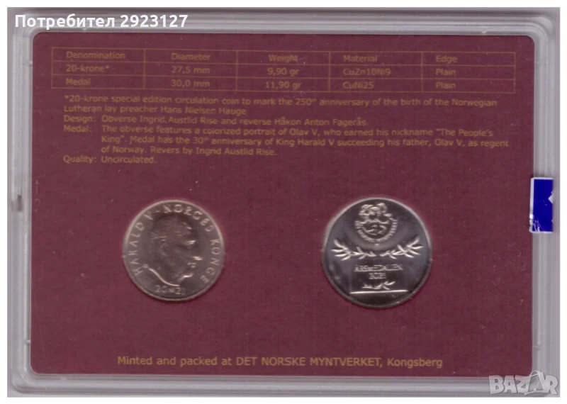 ВЪЗПОМЕНАТЕЛНА МОНЕТА И ПЛАКЕТ - НОРВЕГИЯ