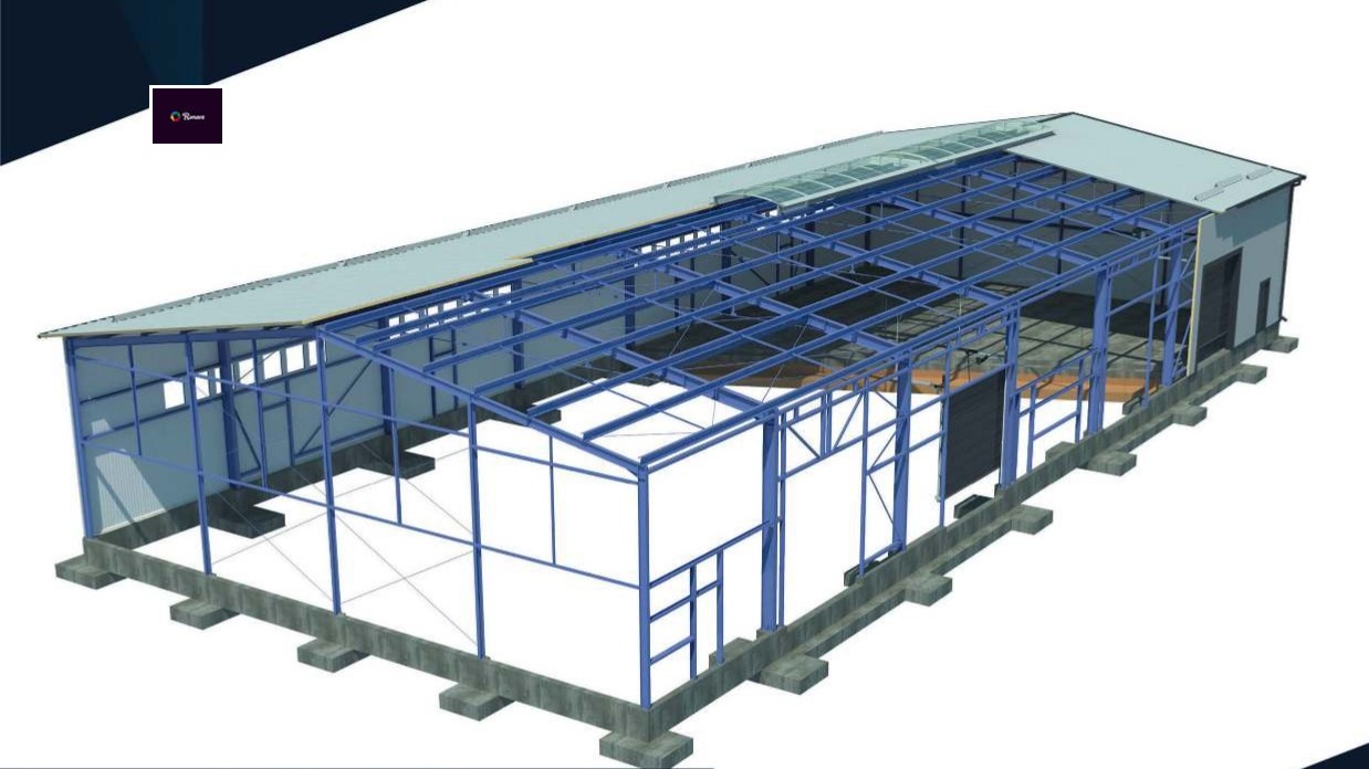 Има проект за изграждането на 900м2 хале / 12м - 72м /. Цената е в размер на 130000 евро без ДДС и включва конструктивен проект, изработка и монтаж на метална конструкция и доставка и монтаж на сандвич панели с D=6см.