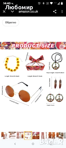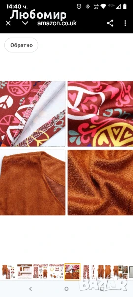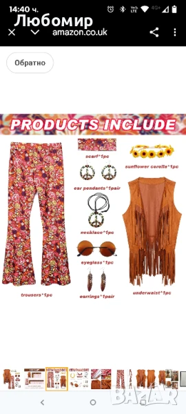 карнавални костюми.Този комплект хипи облекло съдържа 1 х без ръкави, 1 х хипи панталон с разкроени крачоли, 8 х аксесоара за хипи рокля. Идеален за хипи партита или ежедневно облекло.Тези хипи дрехи, изработени от полиестерна материя, са много еластични и издръжливи, меки на допир и леко свободни за леко и удобно прилягане.Кафяв елек с ресни, дизайн на жилетка и разкроени панталони в бохемски стил с флорални мотиви, изцяло винтидж, типичен дамски стил от 60-те и 70-те години. Ще изглеждате стилно и привлекателно.Носете тези флорални панталони в стил 60-те и 70-те години с дълго палто с ресни, за да подправите ретро парти в този стил и да изглеждате много бляскаво, бляскаво и привличащо вниманието.
