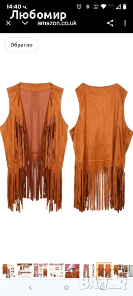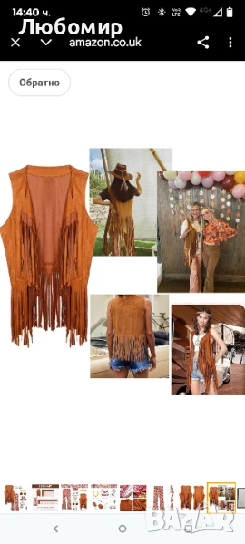 Дамски комплект хипи костюм Ansamy, дамско хипи облекло от 60-те и 70-те с жилетка ресни