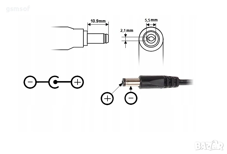 Конектор: Стандартен DC жак (5.5 мм x 2.1 мм)