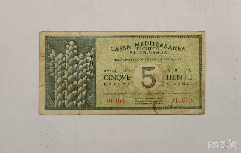 Гърция 5 драхми 1941 година, окупация → Обява 50616875