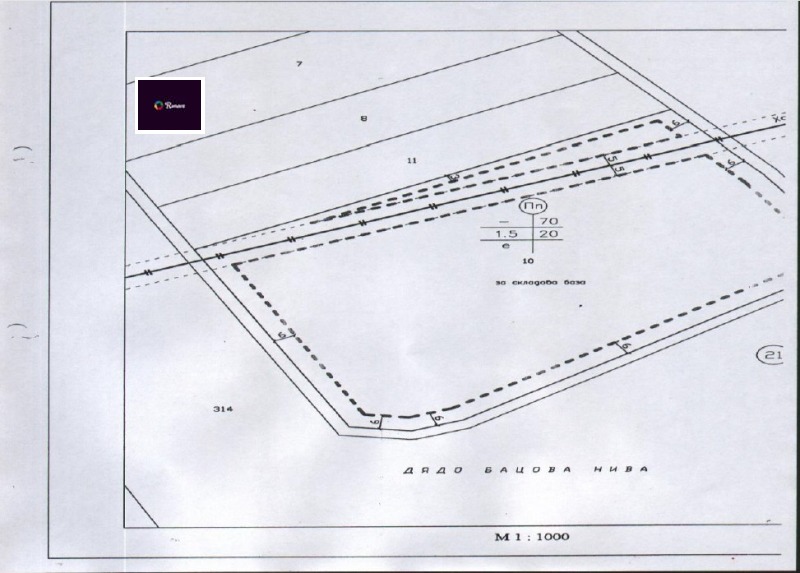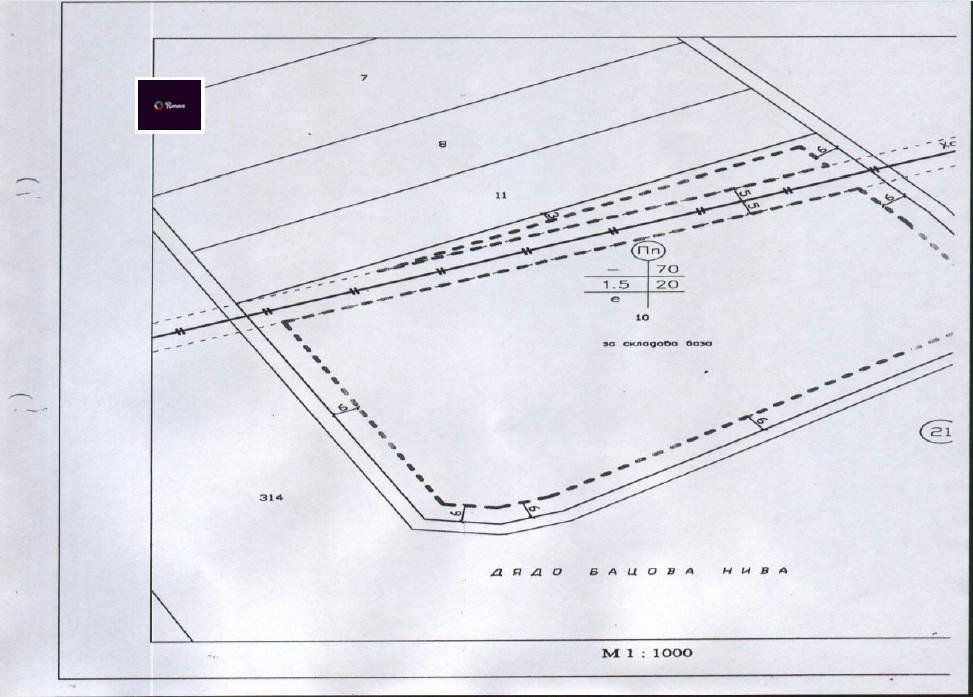 Има РАЗРЕШЕНИЕ ЗА СТРОЕЖ на склад за пакетирани стоки 100 м2. Парцелът е водоснабден с водопроводно отклонение с Ф 90 мм.