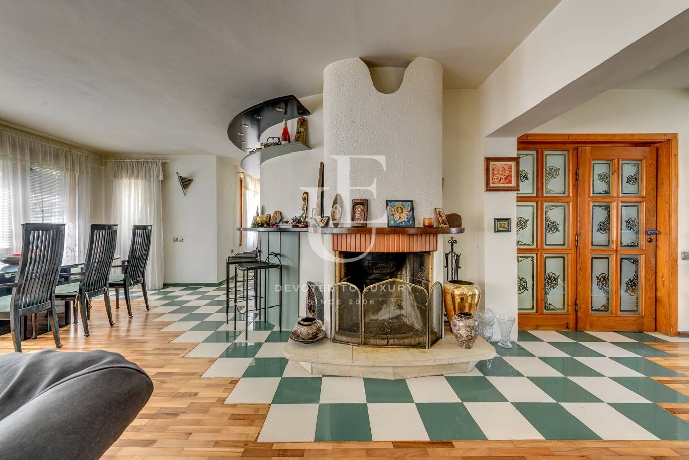 Голямата къща е разположена на две нива, които са разпределени в просторен хол с камина, кухня, три спални, две бани с тоалетни, подземно ниво-складове.