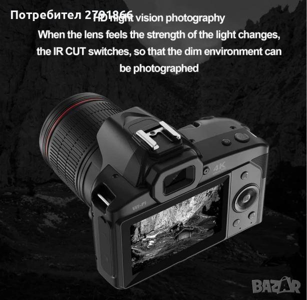 Ретро цифров фотоапарат за фотография, 4K 64MP Wifi IR SLRпредна и задна камера, нощно виждане