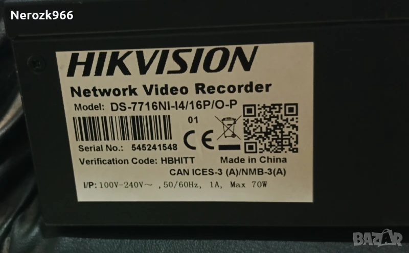 Мрежов видеорекордер - 16-канален NVR Hikvision DS-7716ni-i4/16p/o-p 700 лв. → Обява 50619025