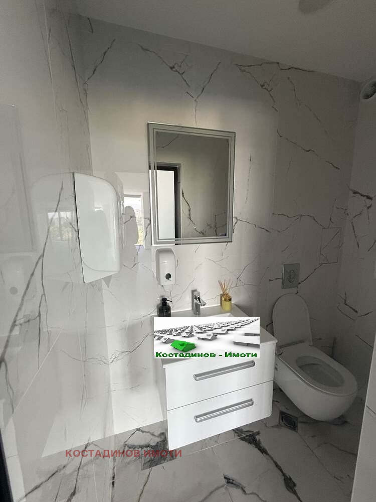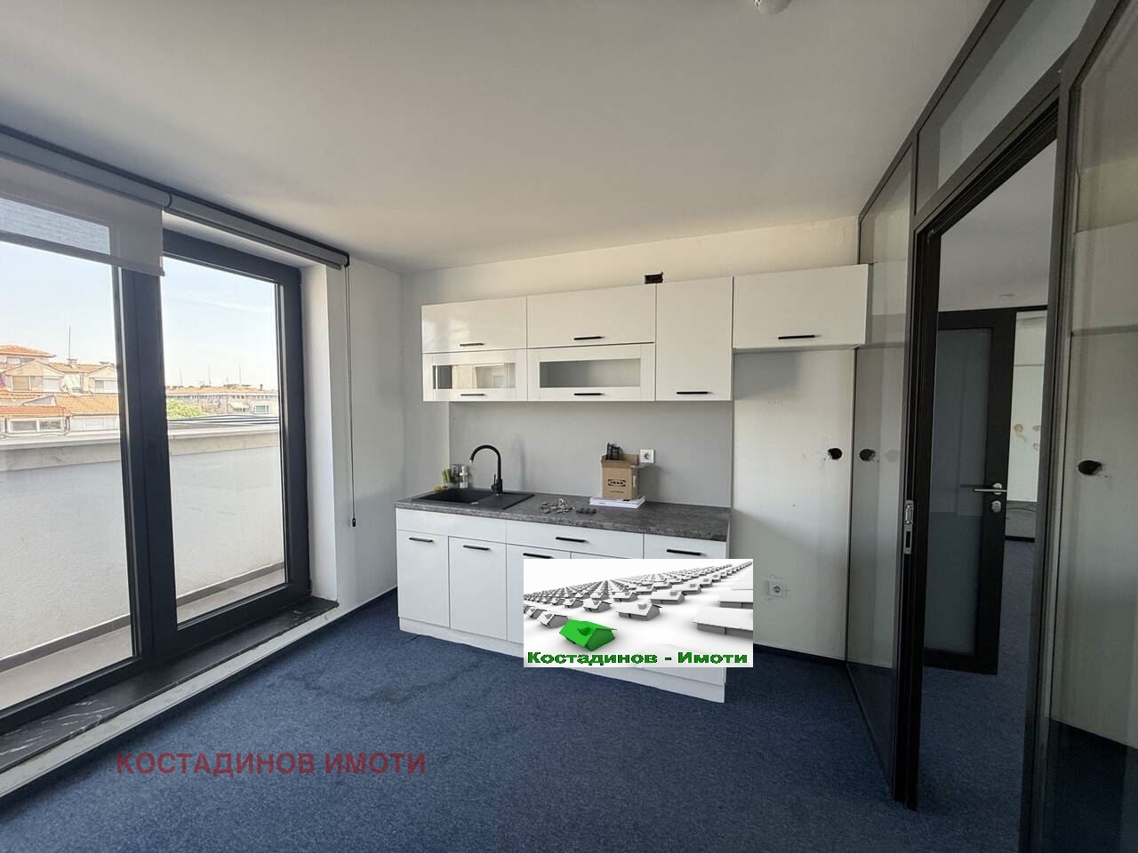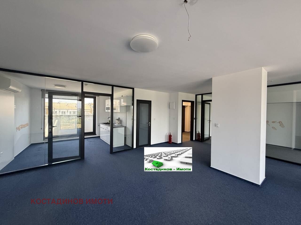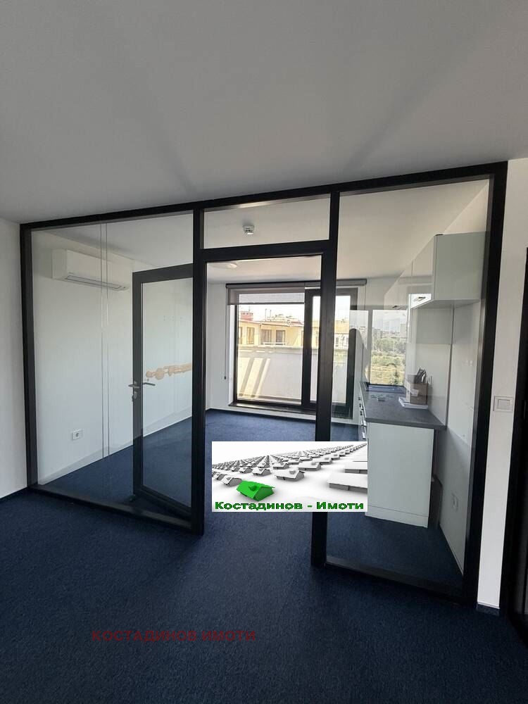 Предлагаме ви самостоятелен офис 104кв.м на 5-ти непоследен етаж с асансьор в луксозна бизнес сграда. Помещението е разделено със стъклени прегради на две офис части, кухненски бокс, предверие, санитарен възел и тераса. Монтирани са климатици. Възможност за паркомясто. Подходящ за адвокатска кантора, нотариална кантора, агенция за недвижими имоти, медицински център, ИТ компания, счетоводна кантора и др. При сериозен интерес и огледи обадете се на фирма Костадинов Имоти.
