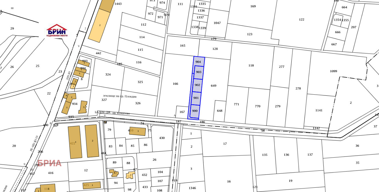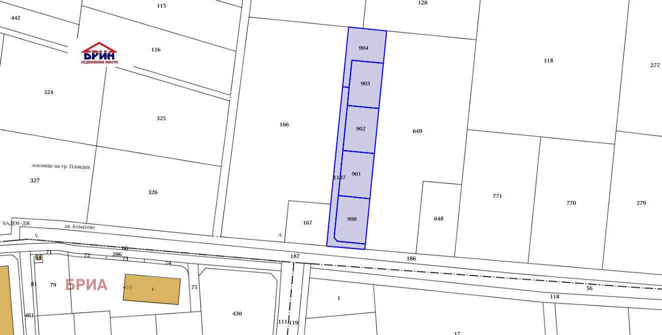 Поземлен имот 56784.382.903, област Пловдив, община Пловдив, гр. Пловдив, район Южен, п.к. 4000, м. КВ. БЕЛОМОРСКИ, вид собств. Частна, вид територия Земеделска, НТП Ниско застрояване (до 10 m), площ 510 кв. м, стар номер 382.288, парцел 382.903-за жил.застр,