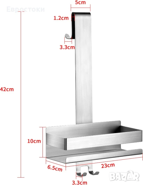 Размери: душ рафт от неръждаема стомана с дължина на държача 42 см; кошница за душ: 23 x 10 x 6,5 см (Д x Ш x В). Можете да поставите душ гел, сапун, шампоан и др.