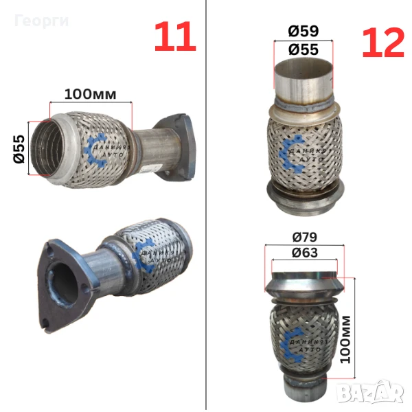 11. Мека връзка за ауспух Ф55 x 100мм с фланец - Ауди А4, А6, Фолксваген Пасат - 46,00 лв. ( 23,52 € )