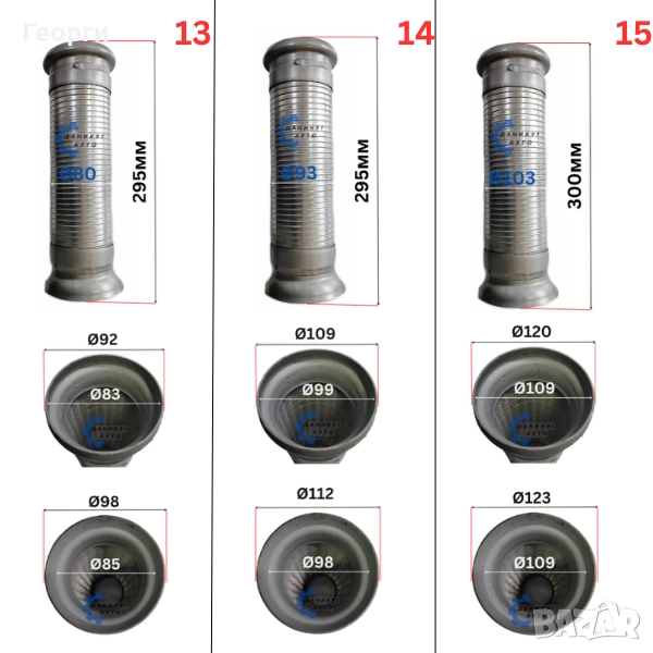13.Мека връзка за ауспух с фланец Ф80 х Ф85 х 295мм - 36,00 лв. ( 18,41 € )