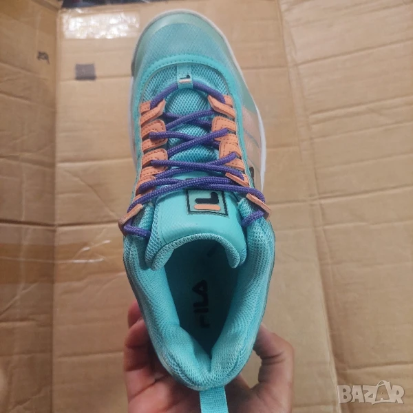 елипсовидно лого на FILA на долната част и езика с лого на F-Box на задната част