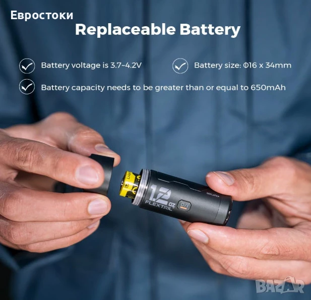 Помпата Flextail Zero е най-малката и най-леката електрическа помпа в света за надуване. Помпата тежи само 33 грама и благодарение на размерите си от 2,6 x 7,5 см можете да я носите на раницата си или в джоба си.