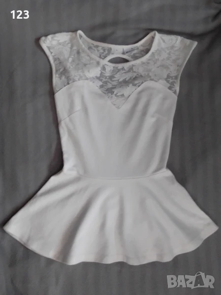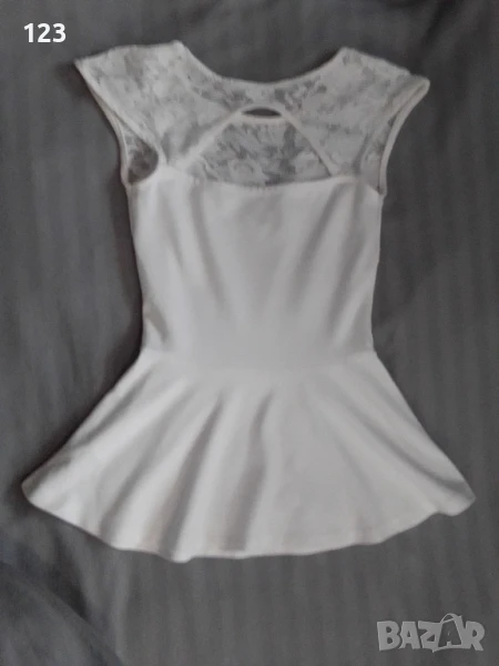 Блузката е бяла, на снимките се вижда как изглежда отред и в