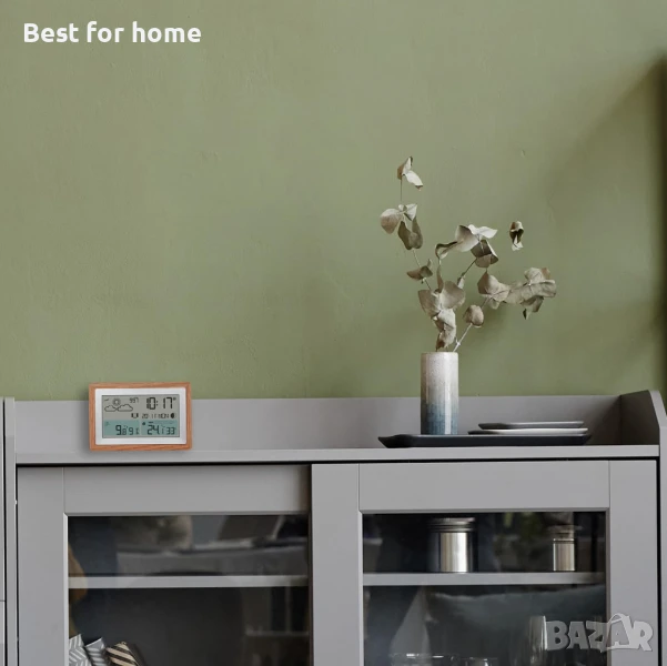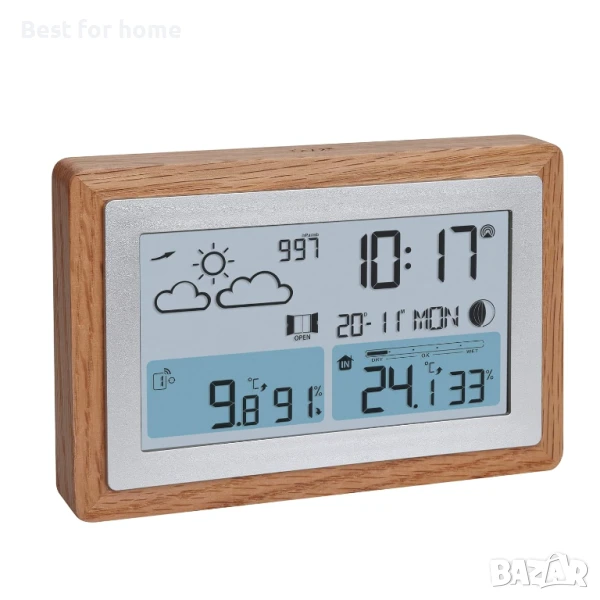 Цифрова метеорологична станция: безжична метеорологична станция с външен сензор, безжично предаване на температура чрез до 3 предавателя (обхват приблизително 60 м), измерване на температура и влажност на закрито/отвън, прогноза за времето със символи за времето и показване на тенденции