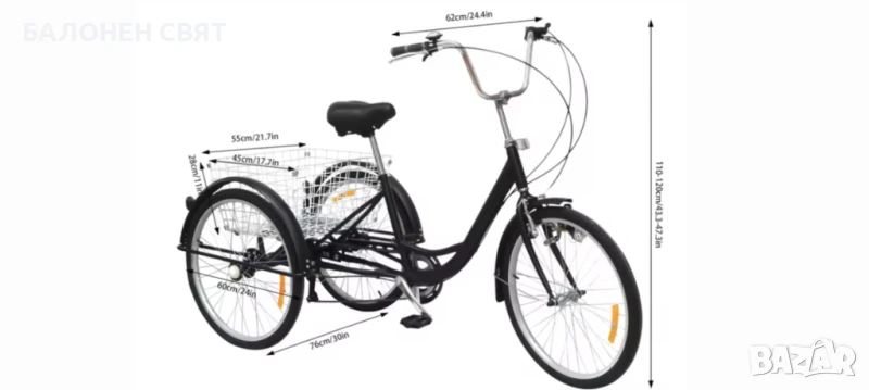 Семеен Триколесен Велосипед Триколка 24 цола 6 скорости
