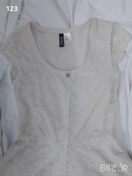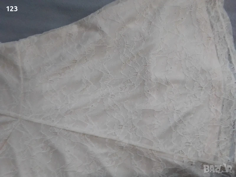 Нежна дантелена маркова рокля в чаен цвят (кремаво-телесен) с