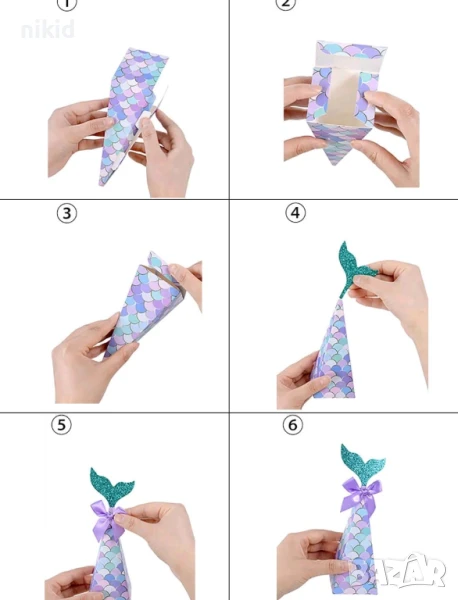 Опашка русалка с люспКартонена кутия кутийка за лакомства сувенир подарък парти рожден ден картонени → Обява 50622868