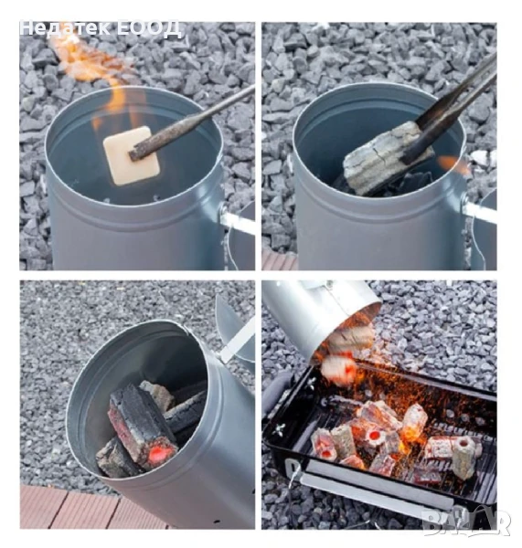 Подпалвач за дървени въглища с капацитет 2 кг. Това е практичен инструмент за запалване на огъня във вашето барбекю. Изработен е от поцинкован метал с дръжка и термозащита. Този аксесоар е ценен за всеки гриловар, който иска да впечатли приятелите и семейството си. Запалете огъня мигновено, без усилия, духалка и пепел.