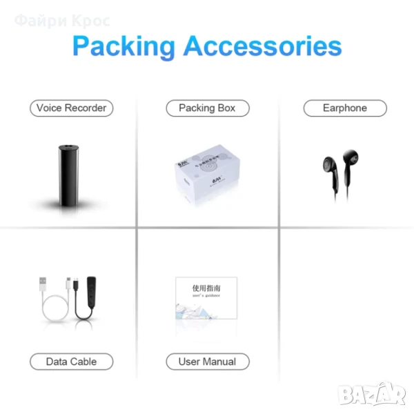 1 x Аудиозаписващо устройство