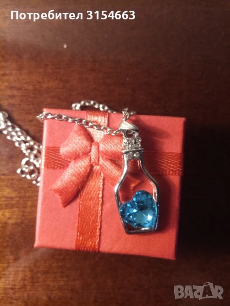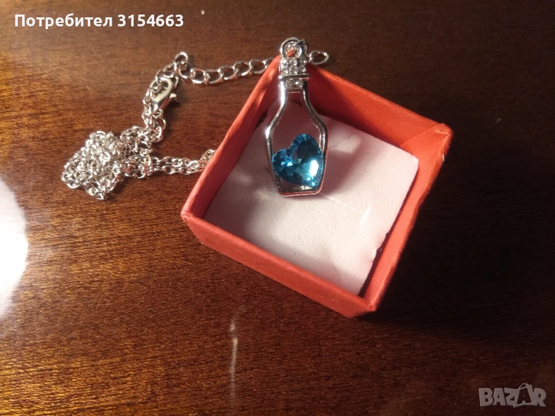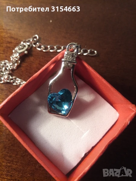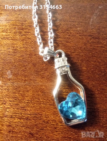 Колие с кристал сърце в бутилка. Цвят на кристала океанско синьо.