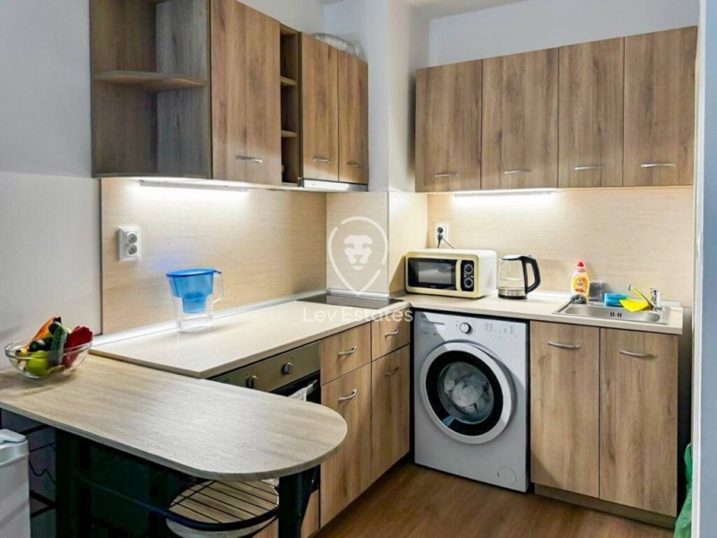 Двустайният апартамент разполага с всичко необходимо за комфортно живеене и почивка на курорта. Има мебели и битова техника. За климатичен контрол във всяка стая е монтиран климатик.
