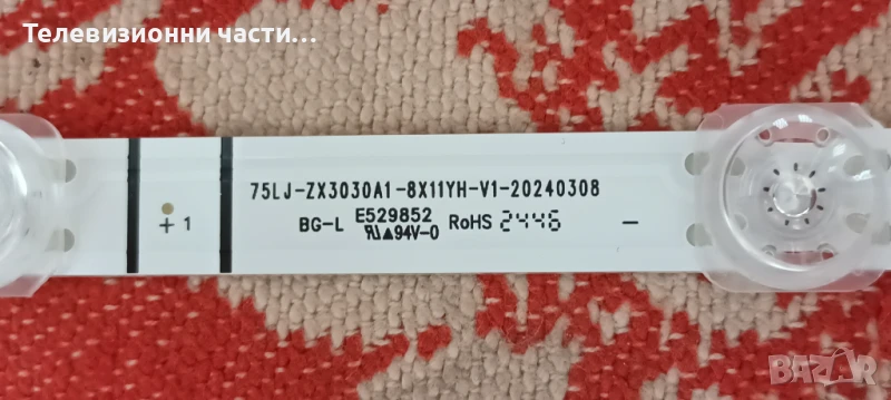 LED Подсветка 75LJ-ZX3030A1-8X11YH-V1-20240308 E529852 - нови , в отлично състояние - 8 ленти по 11 диода - 56.24 евро / 110лв за целия комплект