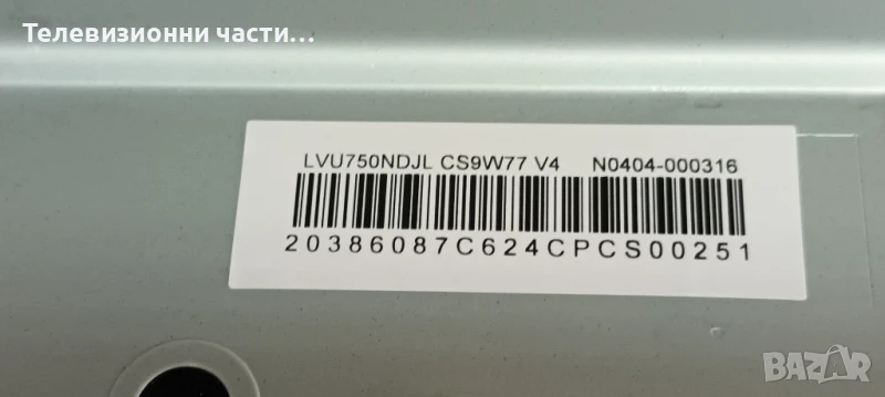 TCL 75C61BX1 със счупен екран.Панел LVU750NDJL CS9W77 V4.Матрица ST7461D03-2 CSUO7-XLL-1 CSU07-XRR-1