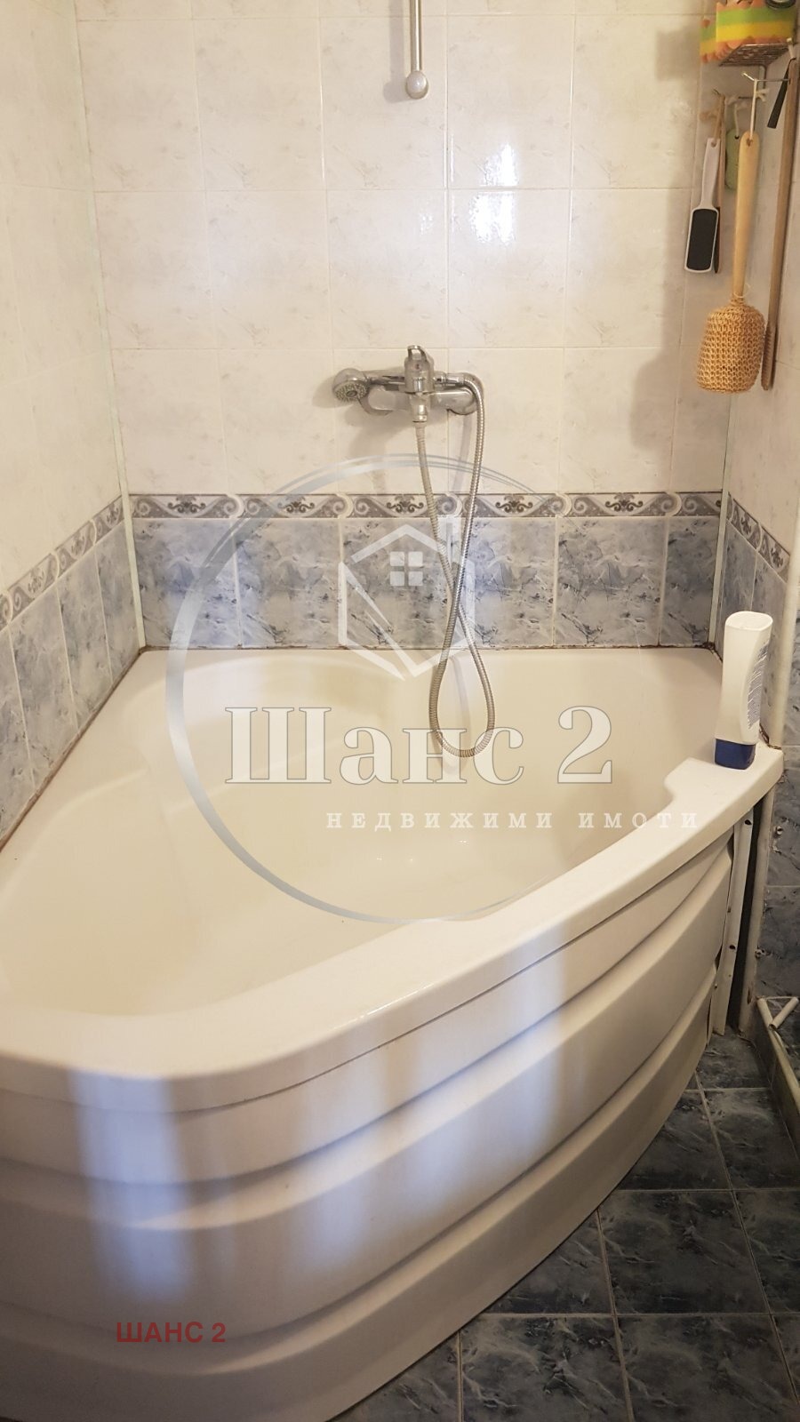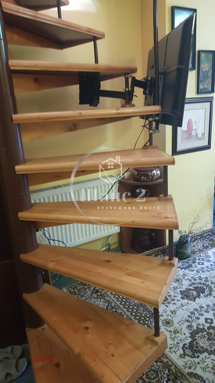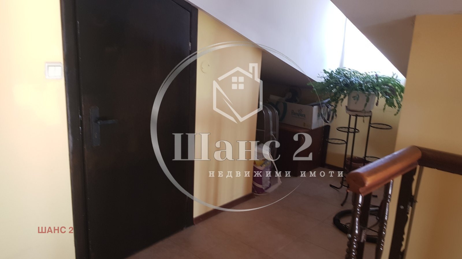 ет. 2. Площ 40м2 със следното разпределение: голяма стая, баня с вана, мокро помещение с тоалетна, усвоено складово пространство и малка тераса, от която се разкрива панорама към целия град.
