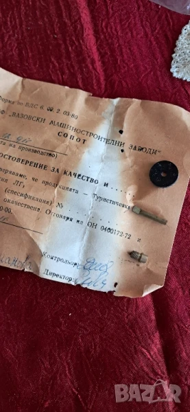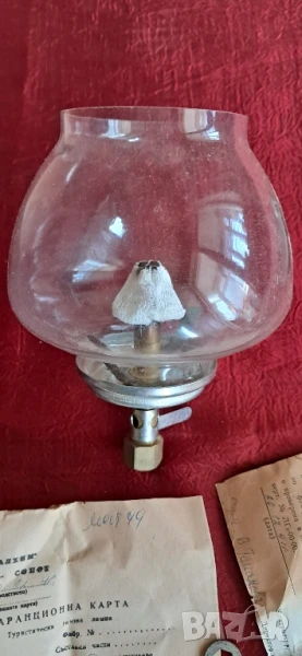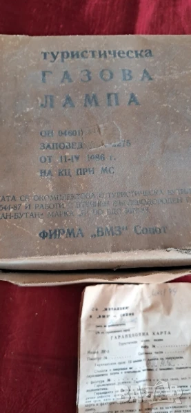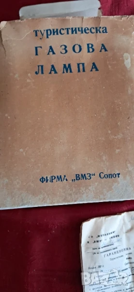 Стара туристическа газова лампа Бг.Вмз-Сопот, състояние чисто Нова не е ползвана с пълен набор от части към нея, ключ, гумичка,дюза,упътване, паспорт, дата на покупка, оригинална опаковка, същата е за ценители на ретро предмети и по предназначение. Цената не подлежи на коментар.