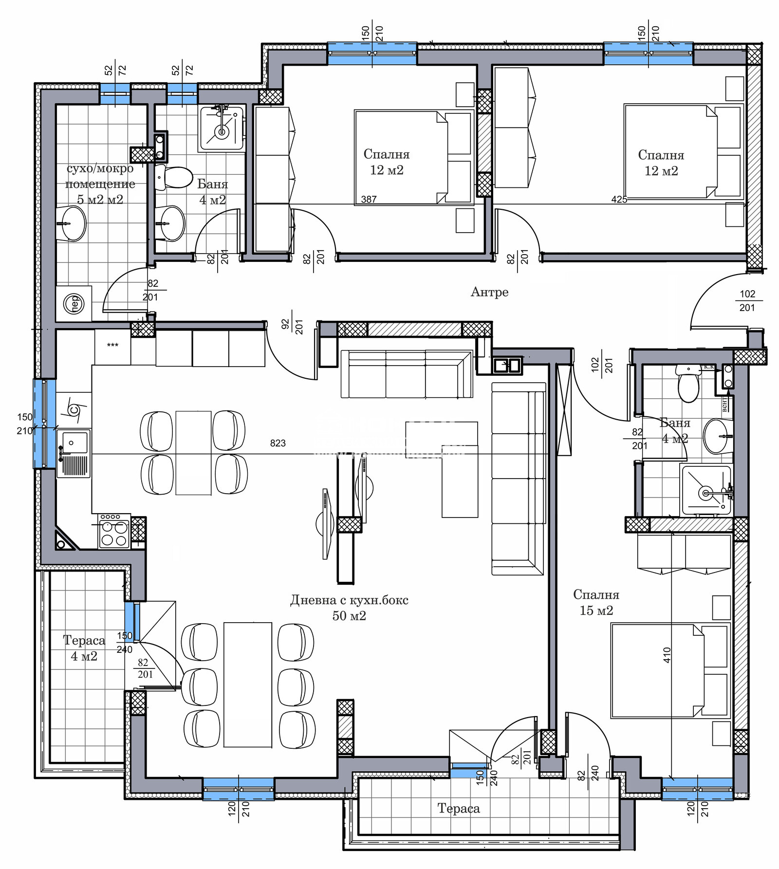 Оферта 67167: Предлагаме Ви функционален и просторен 4 - стаен апартамент в нова малка сграда - тип фамилна къща, с модерна визия, разположена в тих и спокоен квартал, в близост до всички основни комуникации. Жилището се състои от просторна югозападна и ъглова дневна - 50.00 кв.м. с трапезария и кухненска част с излаз на две тераси , три самостоятелни спални , като родителската стая е с площ от 15.00кв.м. и разполага със собствена баня, две детски стаи, втора баня с тоалетна, голямо и удобно перално помещение и широко входно антре. Сградата е проектирана с концепцията да създаде максимален комфорт, уют и спокойна среда на своите нови обитатели след забързаното ежедневие. Кооперацията се строи от реномирана фирма с множество готови сгради. Изпълнението е с висококачествени материали, отговарящи на всички съвременни изисквания: червена тухла, 6 -камерна ПВЦ дограма с дървесен цвят, топло и хидро изолация - 10см., масивна входна блиндирана врата. Общите части и терасите ще са луксозно завършени с гранит и иноксови парапети. Сградата е се намира в близост до парк, детска градина, училище и удобен транспорт към централна градска част. Възможност за закупуване на паркоместа във вътрешния двор на цени от 10000 и партерни Гаражи. Разсрочено плащане в рамките на строителството. Осигурено банково финансиране на преференциални условия за клиенти на агенцията!!! Приложените снимки са от друга готова сграда на строителната фирма.ВИЖТЕ ОЩЕ ИЗГОДНИ ОФЕРТИ НА https://www.kondorimoti.com/ С ЕЖЕДНЕВНА АКТУАЛИЗАЦИЯ!
