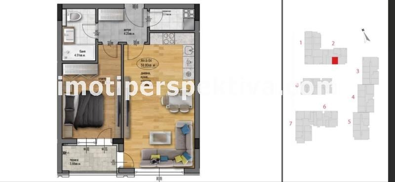 реф.15866 Предлагаме Ви двустаен апартамент на СРЕДЕН етаж на ТИХО и СПОКОЙНО място за живеене в новострояща се сграда. Състои се от СВЕТЪЛ и СЛЪНЧЕВ хол с кухненски бокс, спалня, баня с тоалетна, килер и входно антре. Имотът които ви предлагаме да закупите ще бъде на шпакловка и замазка което дава страхотната възможност на новите собственици да го обзаведат по собствен вкус и стил. В близост са разположени детски градини, училища, хранителни магазини, удобен градски транспорт до всяка една една точка на града и др.