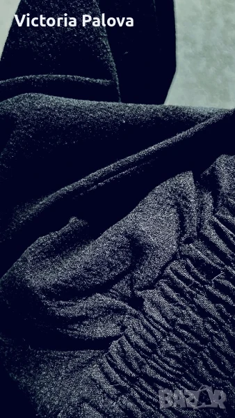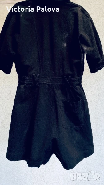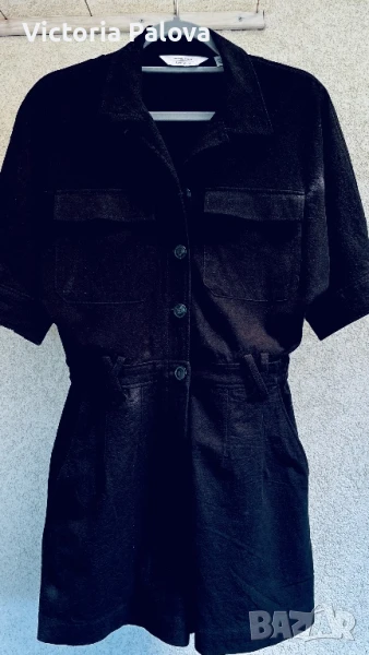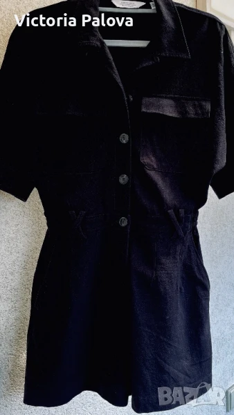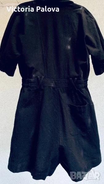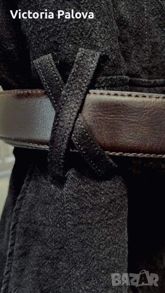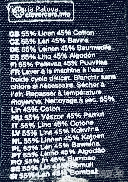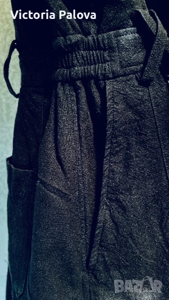 Специфична красива дреха ,груб лен 55% и памук - 45%. Модерна кройка и качествена изработка с интересни детайли - ластични вставки по талията и ръкавите, външни горни джобове и вътрешни странични, един джоб отзад, двойни гайки за колан и за красота, без шев по рамото - стои много красиво. ГО - 44см, талия (с ластици) - 34-38см, дължина отпред - 82см, отзад - 86см.