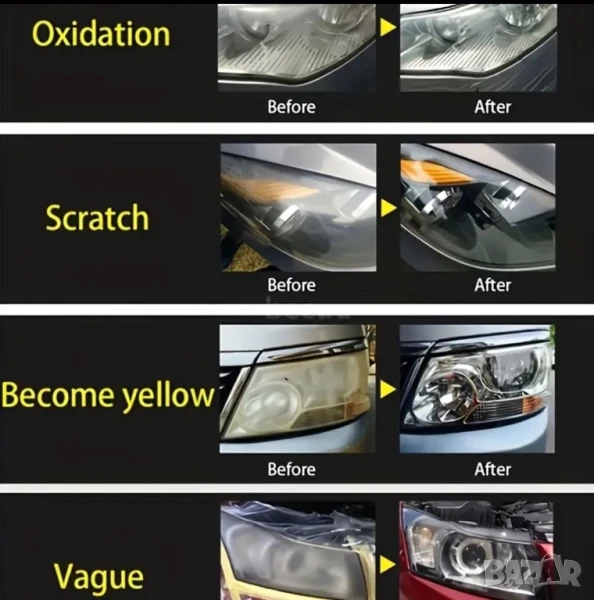 ✅ Идеално решение за пожълтели, надраскани или замъглени автомобилни фарове!