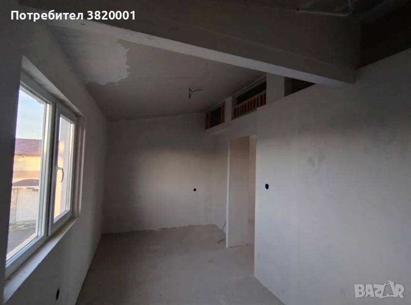 Втори етаж: коридор, голяма баня и тоалетна, спалня 1 с подтаванска ниша, спалня 2 с подтаванска ниша, голяма дневна с кухенски кът и тераса.